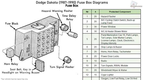 That one is located on the drivers side end of the dashboard. The lights and the cigarette lighter are out. 1990 dodge van b350 wiring diagram. Need location of fuel pump relay. Fuse box diagram (fuse layout), location and assignment of fuses dodge dakota (1987, 1988, 1989, 1990).